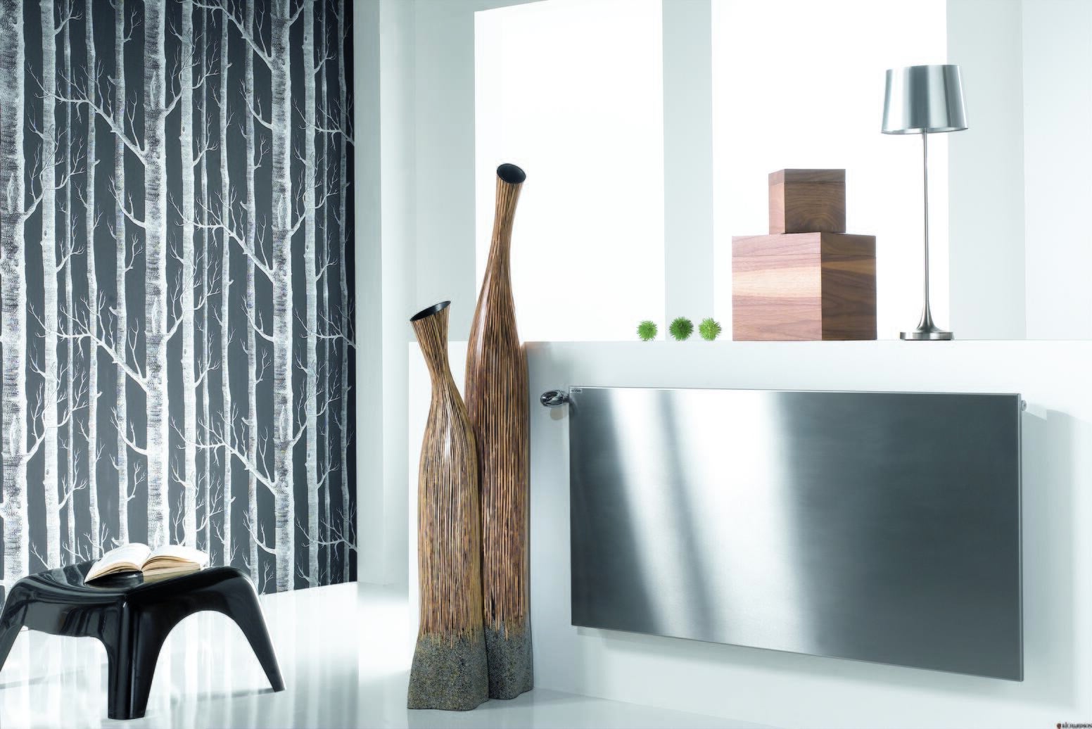 - Radiateur décoratif en acier, habillé sur la face avant d'une plaque métallique : Blanc Pure White RAL 9016