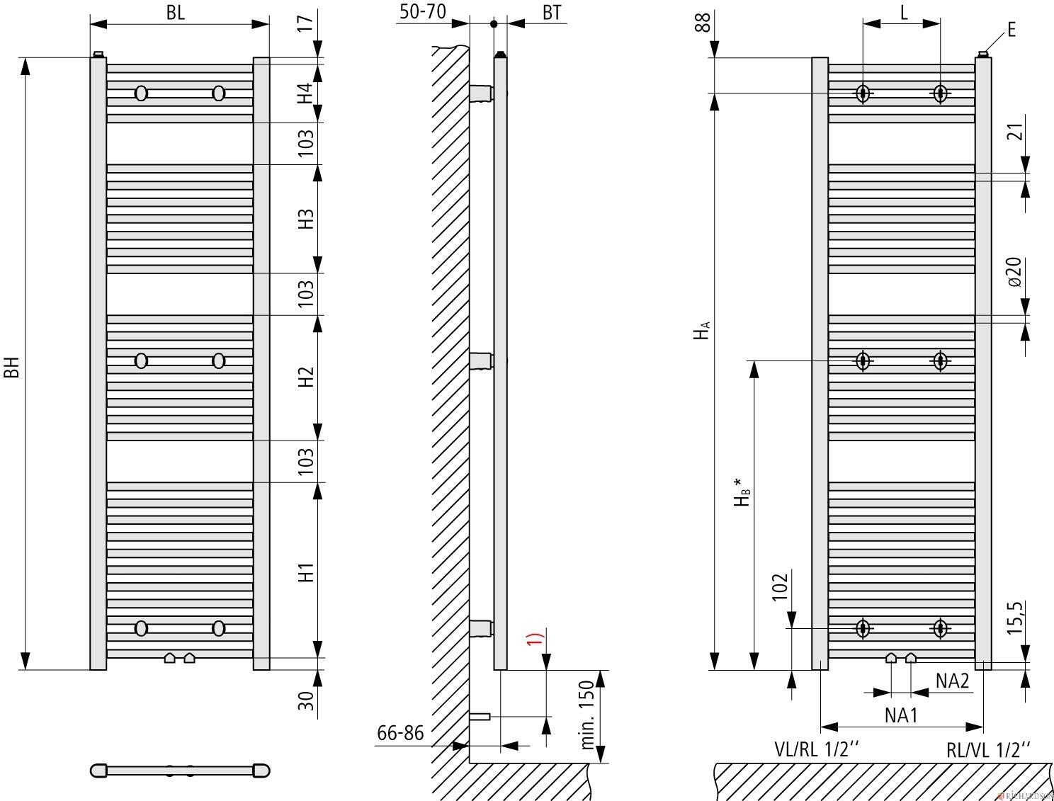 Version eau chaude - Dimensions 1502 x 590 - Puissance (w) 778 - Référence LS01M1500602XXN
