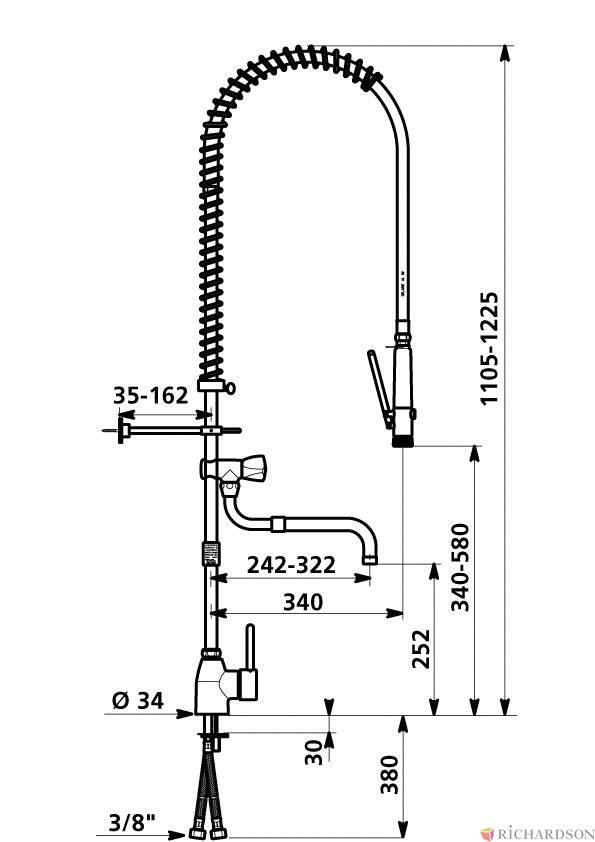 | Fonctionnement et destination | • Mise en pression par ouverture du mitigeur • Déclenchement du jet réglable en actionnant la douchette à gâchette, et du remplissage par ouverture du robinet de puisage. • Destination : cuisines professionnelles (ou domestiques) |