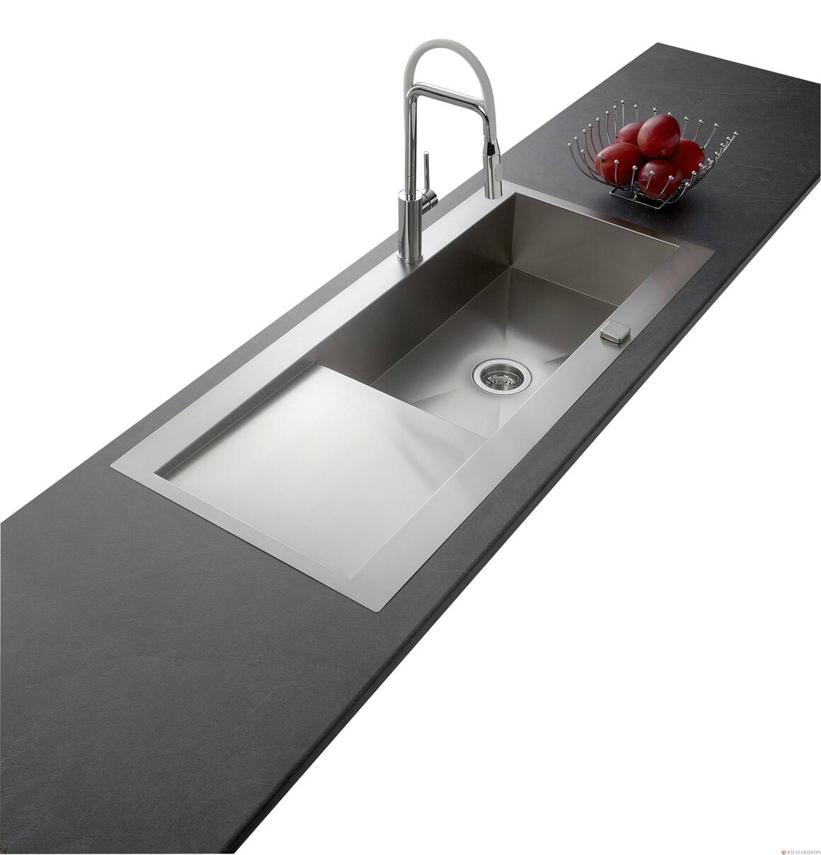 1 très grande cuve, 1 égouttoir - Modèle Comprenant : 1 grande cuve (L 70 x l 38 x P 19 cm) vidage automatique chromé à commande carrée et bonde ø 90 mm - Dimensions L 116 x l 52 cm - Finition Inox lisse - Référence EV56021 IL