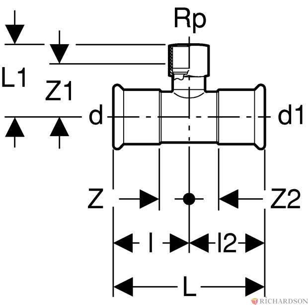 | Descriptif fournisseur | Té Geberit Mapress Acier Inox avec filetage femelle: d=35mm, Rp=3/4'', d1=35mm |