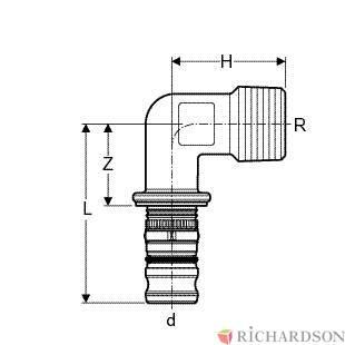 | Descriptif fournisseur | Coude 90° Geberit Mepla avec filetage mâle: d=26mm, R=1'' laiton |