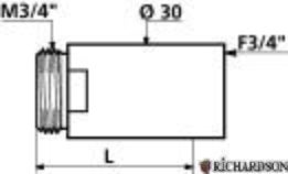 Modèle | Rallonge en laiton chromé. MF3/4". Ø 30, L.25 mm. Garantie 10 ans.Garantie 10 ans |