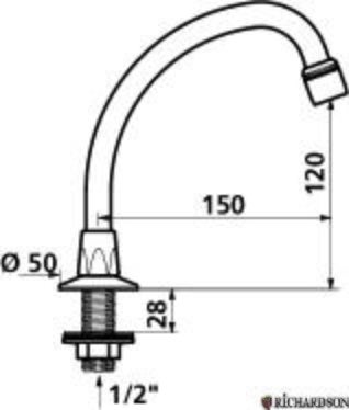 Bec col de cygne m 1/2" - Modèle L.150 mm, H.120 mm. Fixation par contre-écrou. Laiton chromé. Brise-jet antitartre régulé à 3 l/min. Garantie 10 ans - Finition Chromé - Référence 967152
