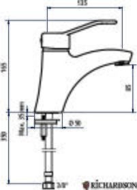 Descriptif fournisseur | Mitigeur lav. méca. H.85 L.135, sans tirette, man. ajourée |