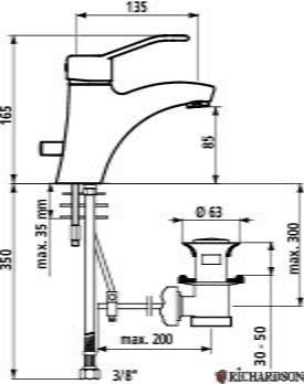 Mitigeur H.85 L.135, manette ajourée