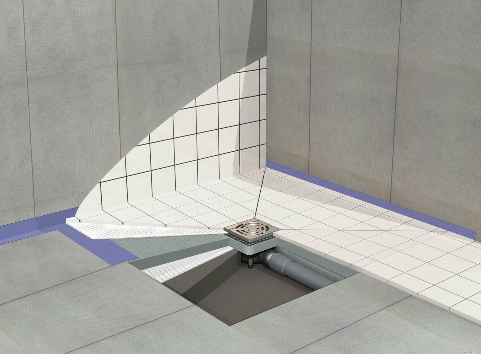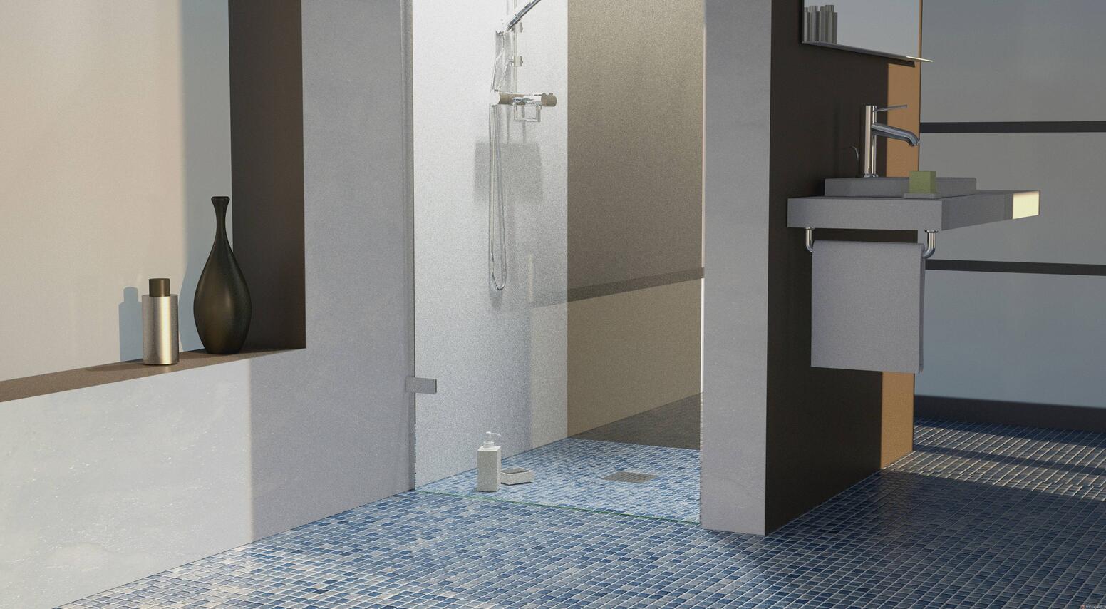 Receveur à carreler constitué de panneaux à carreler en Polystyrène extrudé, renforcé et préparé pour la pose directe de carrelage | |