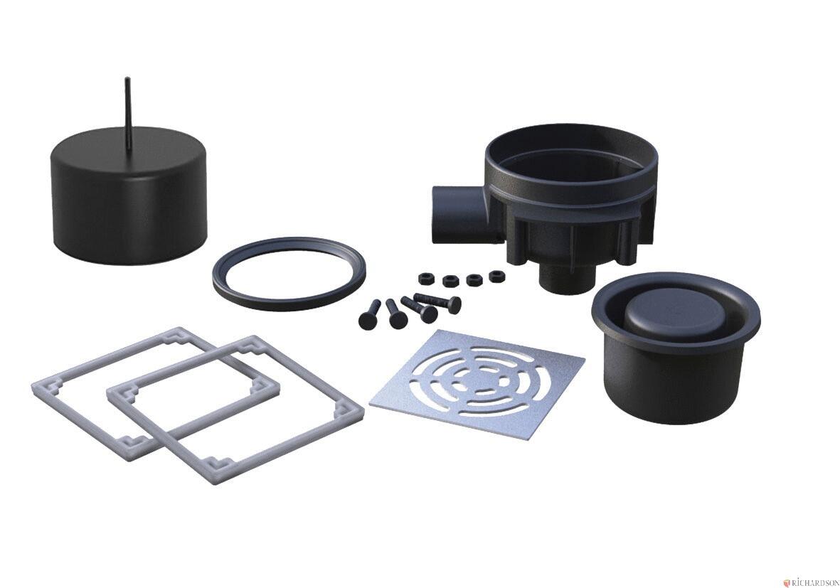 Descriptif fournisseur | SOL PANODUR CARRÉ 900X900X40 AVEC SIPHON DE SOL CENTRÉ SORTIE HORIZONTALE |
