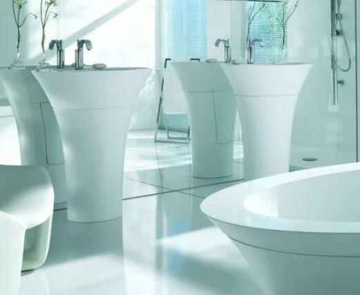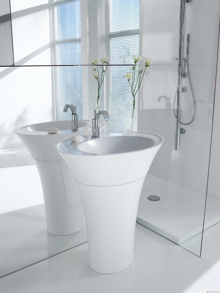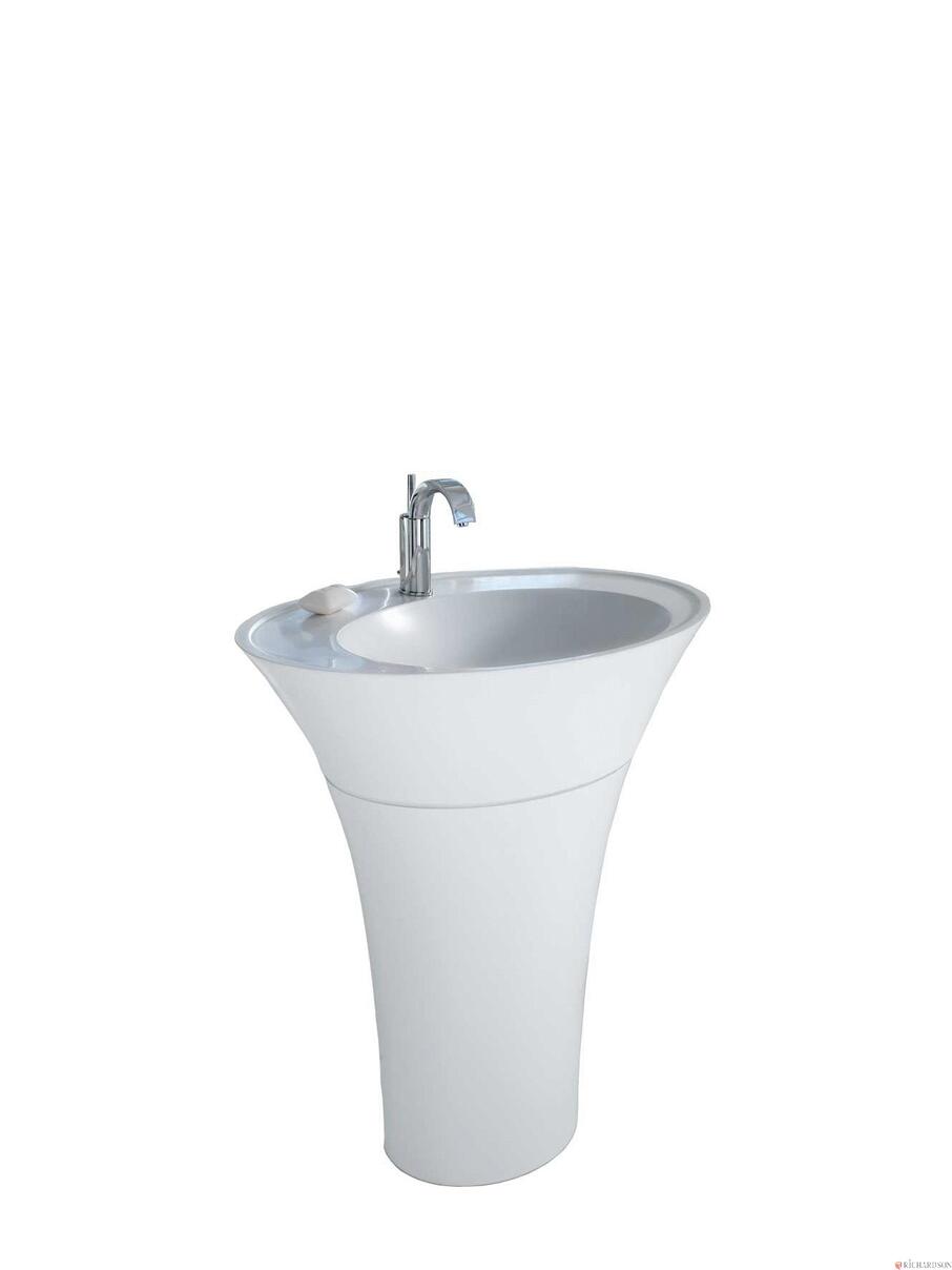 Modèle | Vasque sur pied Arôme : En Solid Surface Blanc polaire mat (produit dans la masse, très résistant à l'abrasif et très facile d'entretien) avec trop-pein, livrée sans bonde. Kit de trop-plein + kit d'évacuation inclus.- A installer en îlot ou contre un mur |