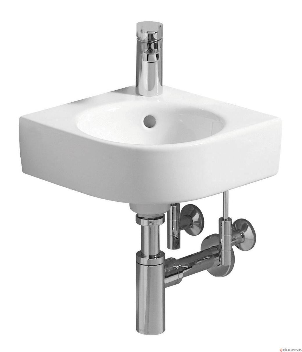 | Descriptif fournisseur | Lave-mains d'angle Geberit Renova Compact, 45x39.5cm, trou de robinetterie au centre, Blanc |