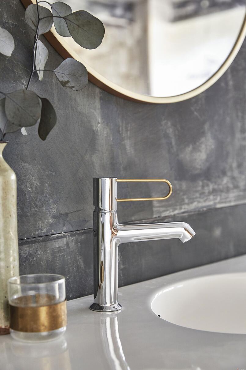 Dénomination | ODEON RIVE GAUCHE Modèle Hauteur totale : 15,8 cm, saillie du bec : 12,3 cm. Débit : 5 L/min. Poignée en inox ultra robuste - Finition Corps chromé avec poignée dorée - Référence E21028-GLD-CP JACOB DELAFON KOHLER [E21028-GLD-CP] |