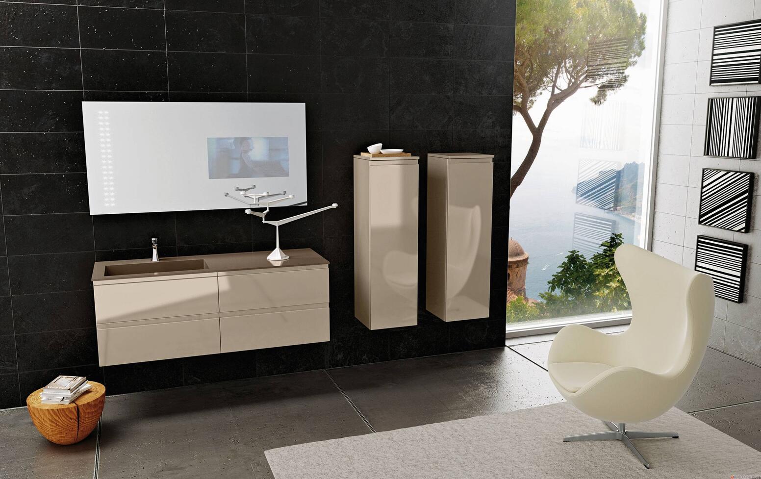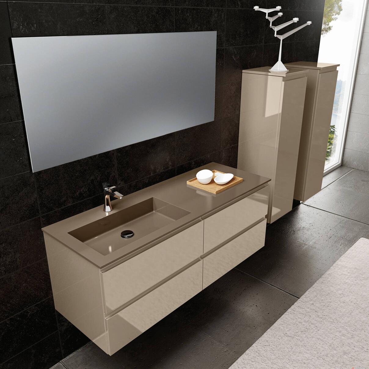 | Finition | Façade laquée : Tortora brillante - Plan de toilette : Beige brillant |