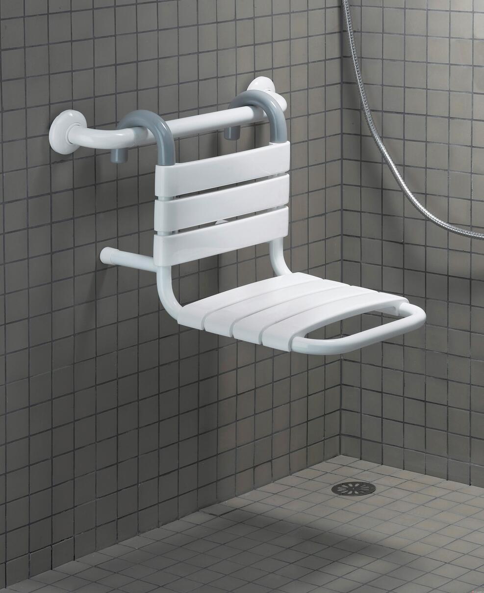Descriptif fournisseur | Siège de douche à suspendre 500 x 317 x 367 mm sur barre d'appui (aluminium, inox, laiton) Ø 30, Ø 32 mm, Ø 33 mm (polyalu), longueur de 400 à 800 mm, tube acier époxy blanc Ø 25 mm, famille : confort et sécurité |