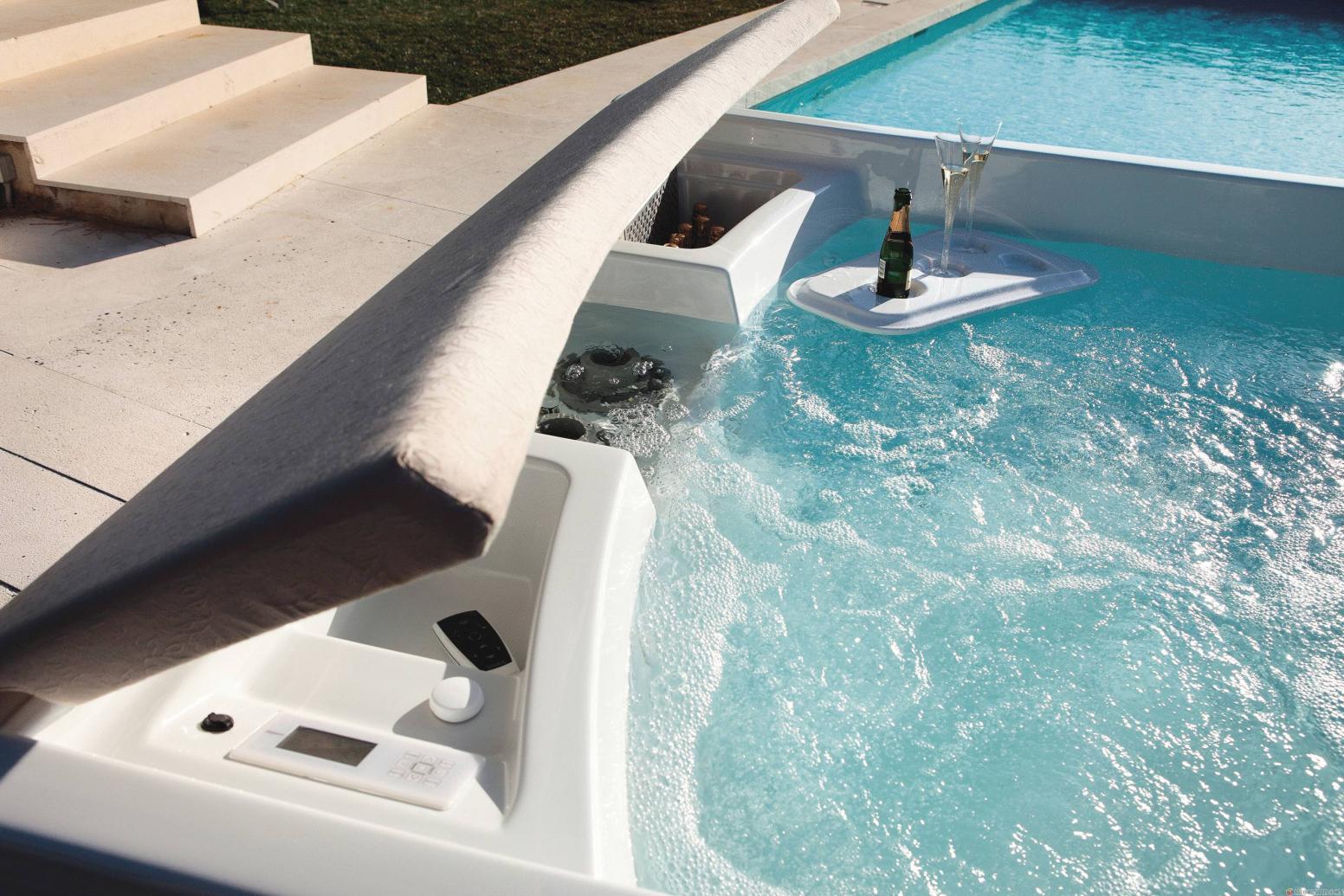 | Modèle | 36 jets (4 Roto Jet, 14 Stream Jet, 10 Directional Stream Jet et 8 Roto Stream Jet) comprenant : système Hydrosilence, panneau de commande, télecommande et couverture de protection thermique |